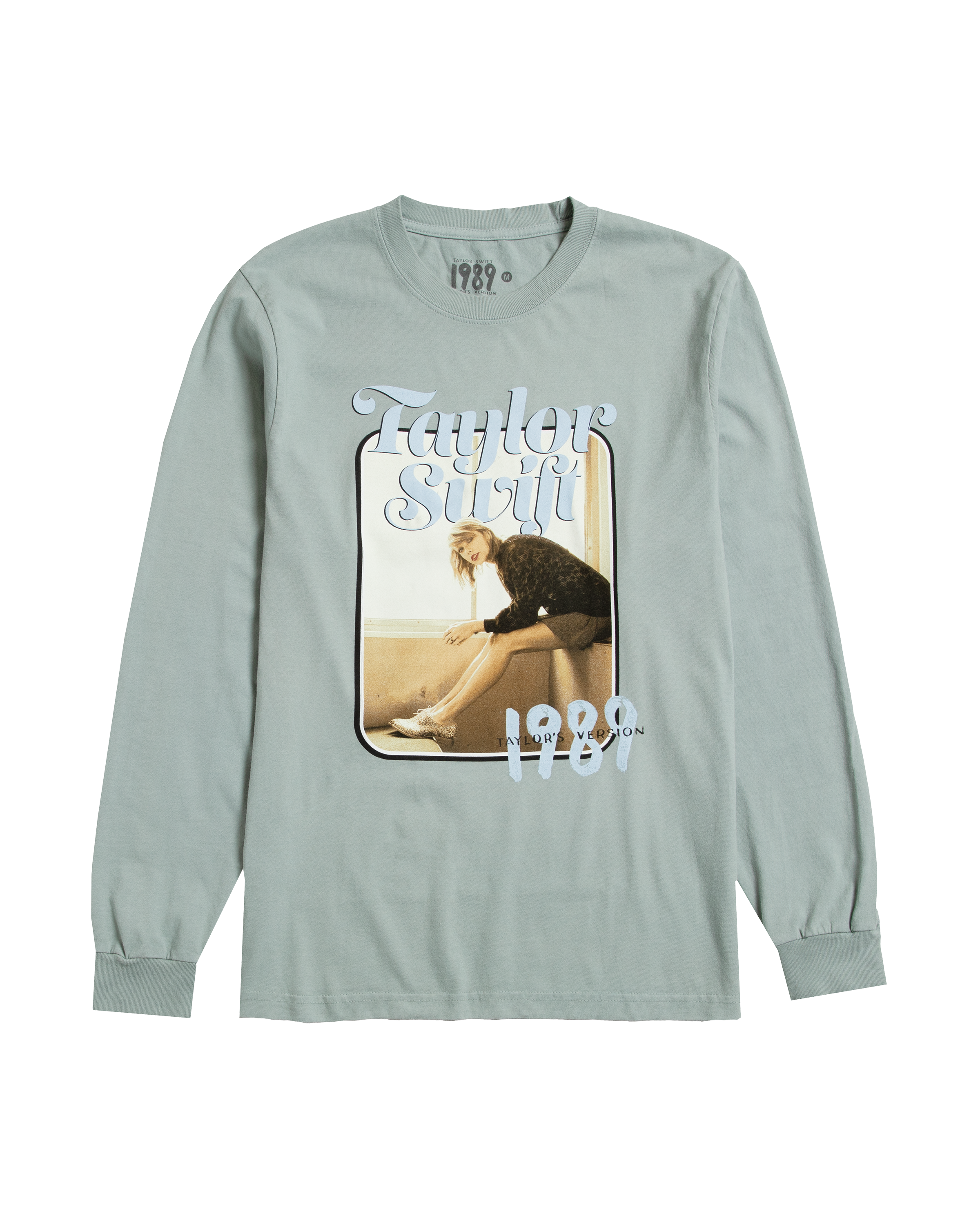 Green long sleeve t-shirt featuring  from the vault photo of Taylor Swift. "Taylor Swift". and "1989 Taylor's Version" printed on front.